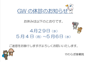 4月のお休みのお知らせ